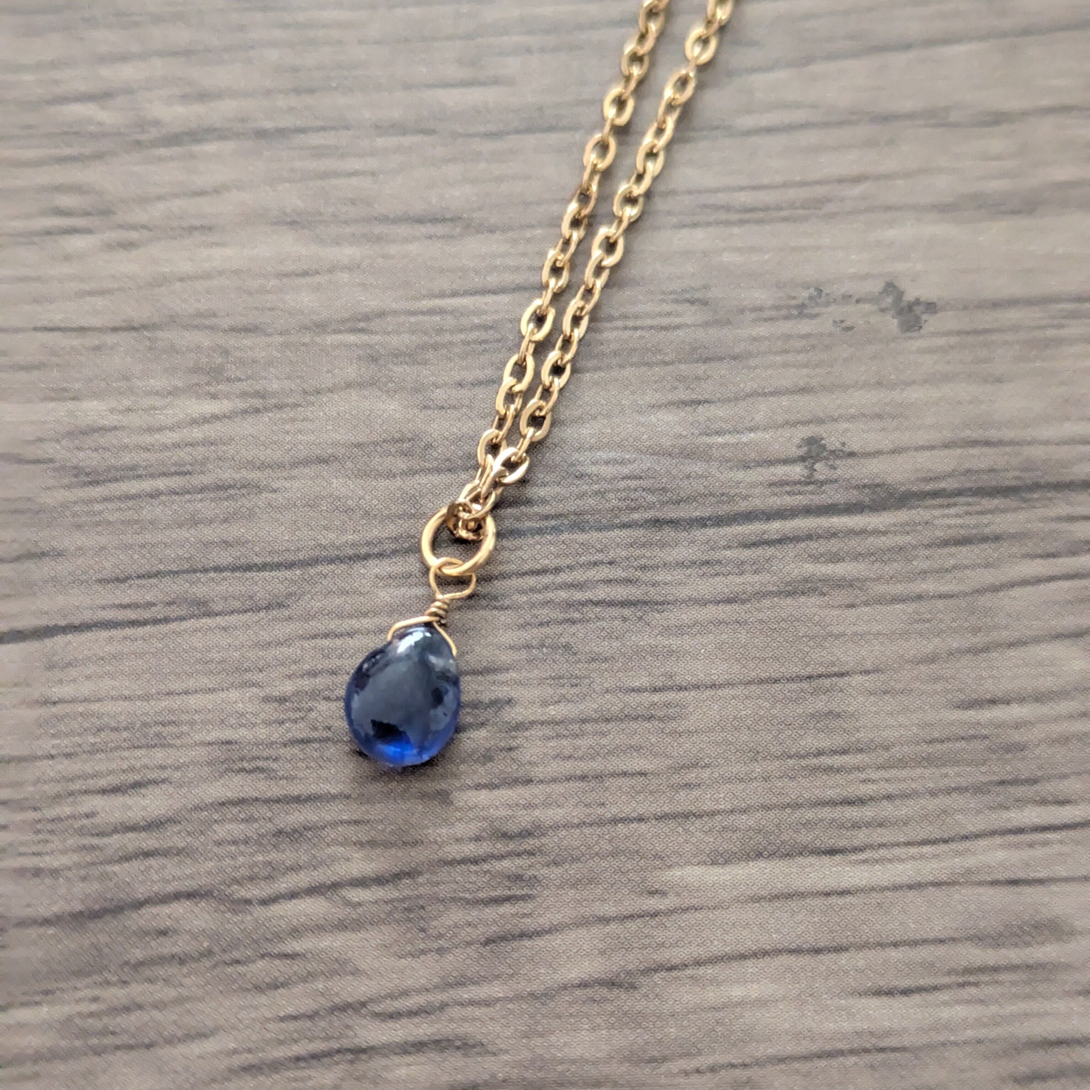 美しいロイヤルブルーのサファイアネックレスです。つるんとしたスムースペアシェイプのお石で小ぶりですが存在感があります。