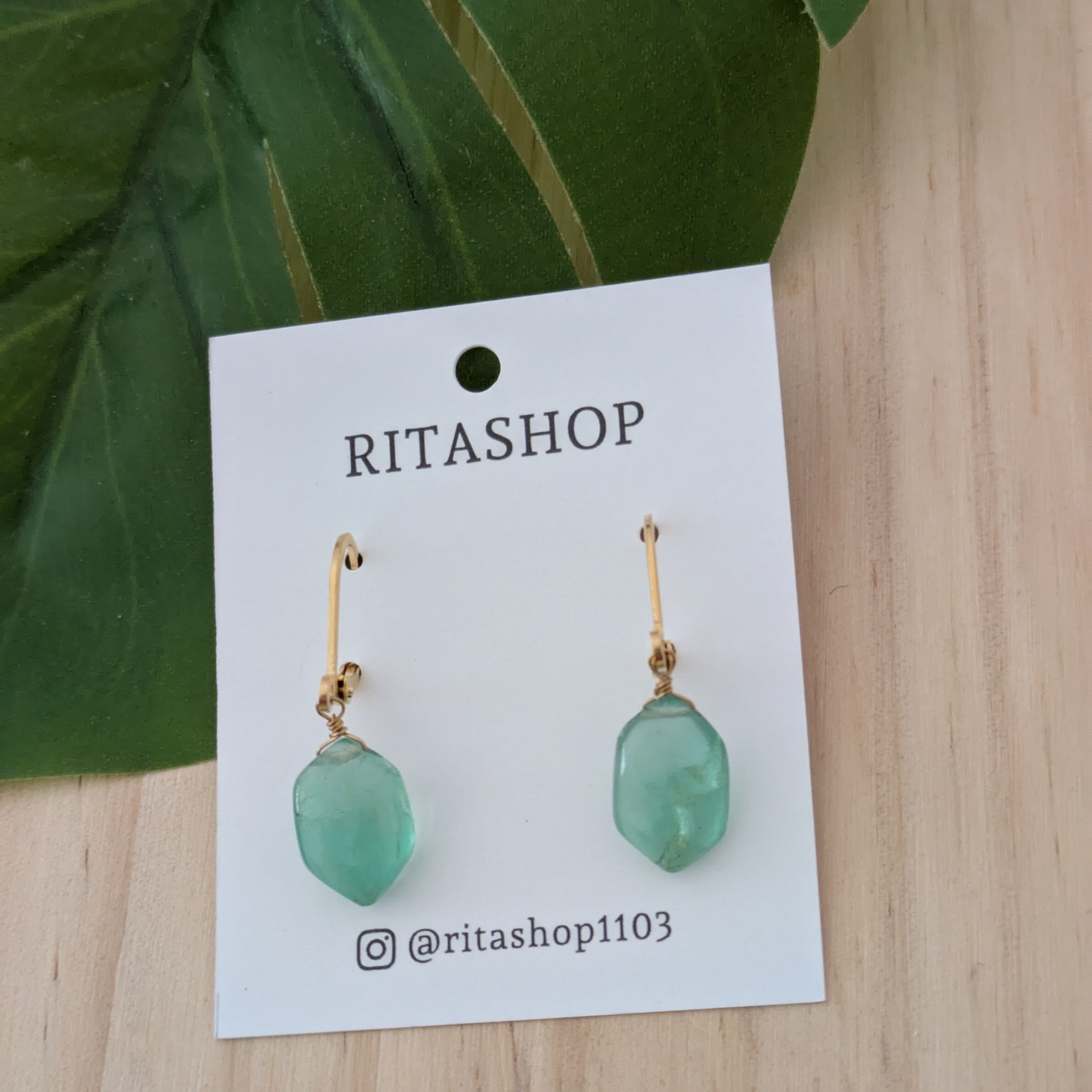 つるりとなめらかなスムースファンシーカットのグリーンフローライトのピアスです。