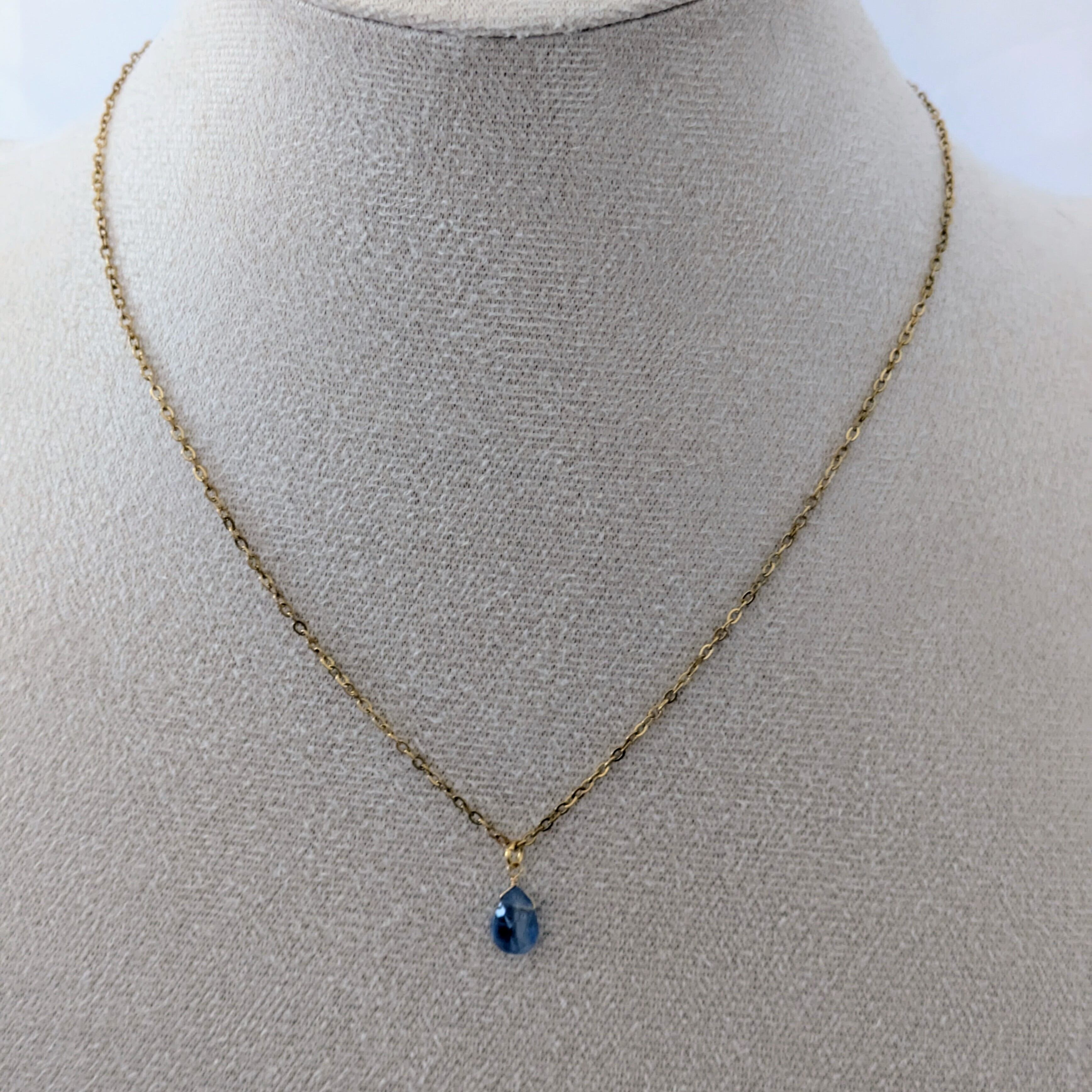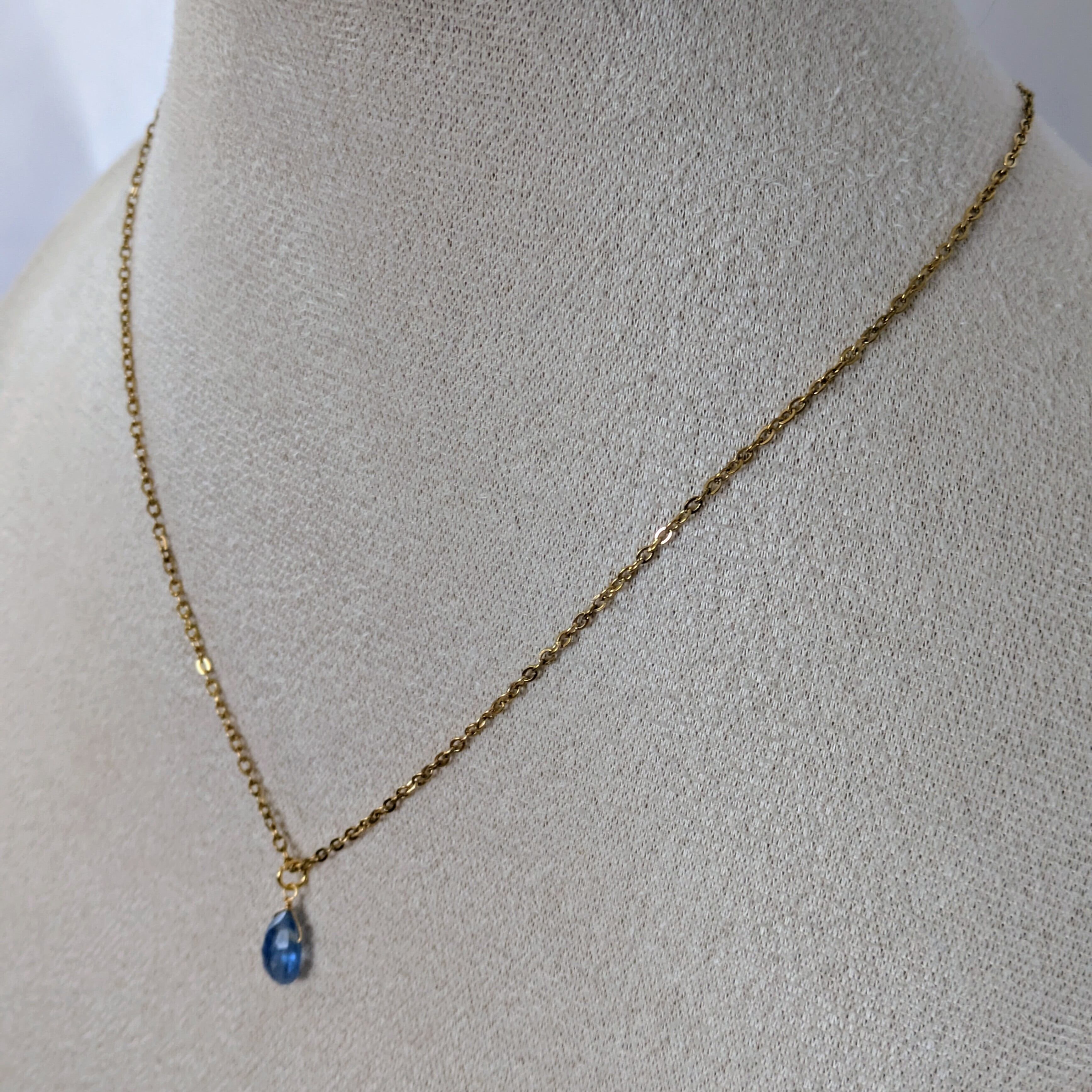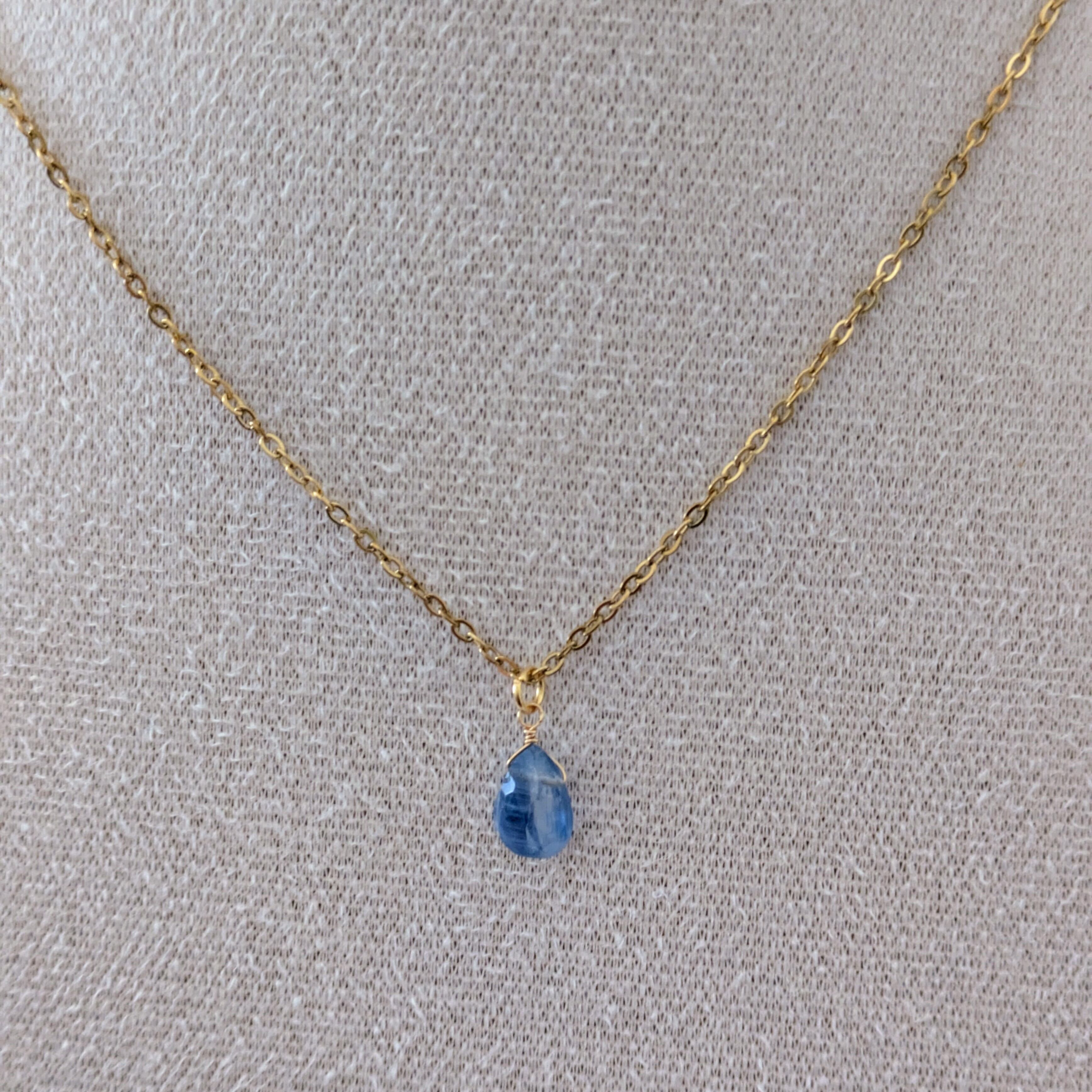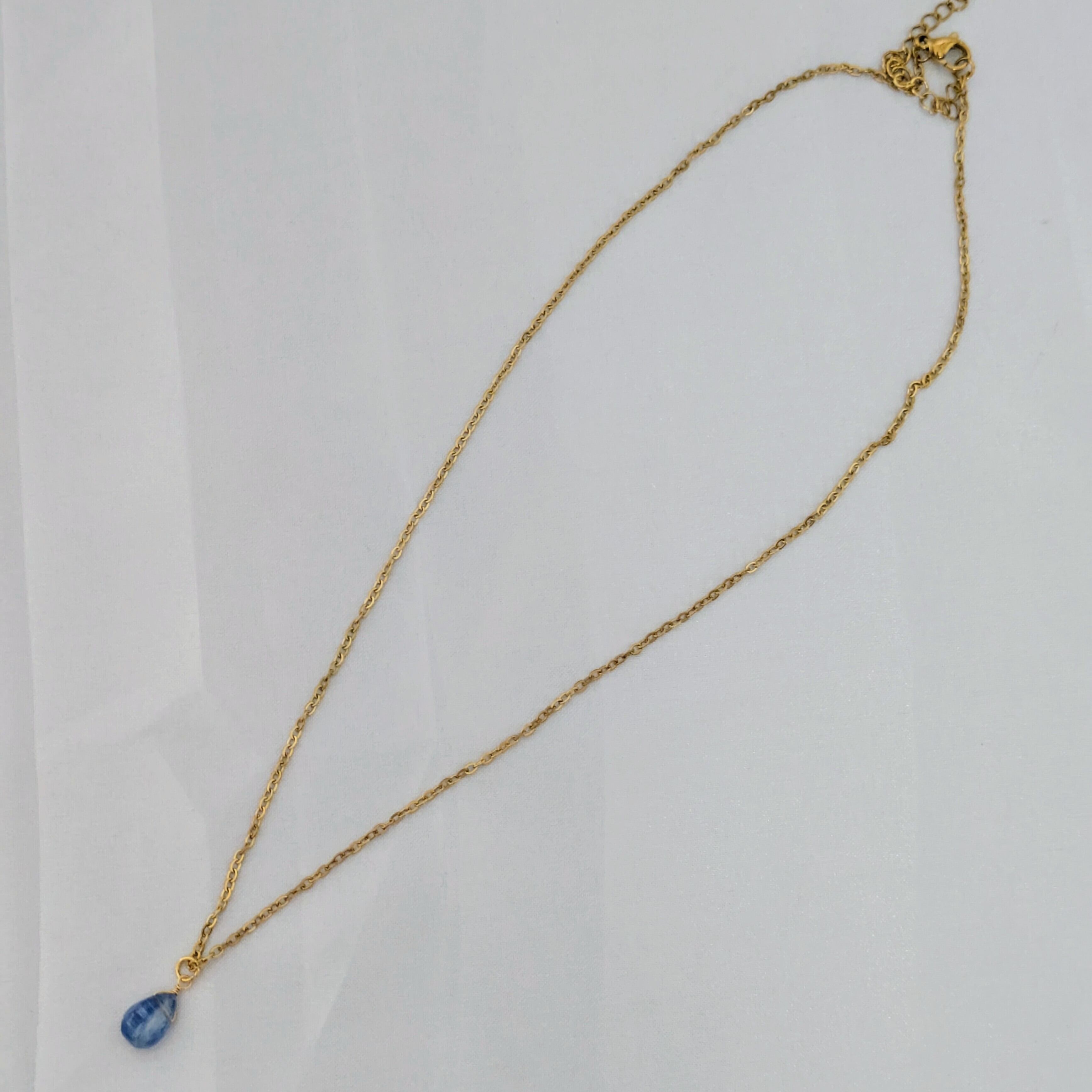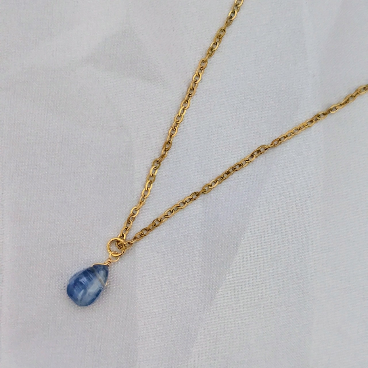 深みのあるブルーが美しいカイヤナイトのひと粒ネックレスです。