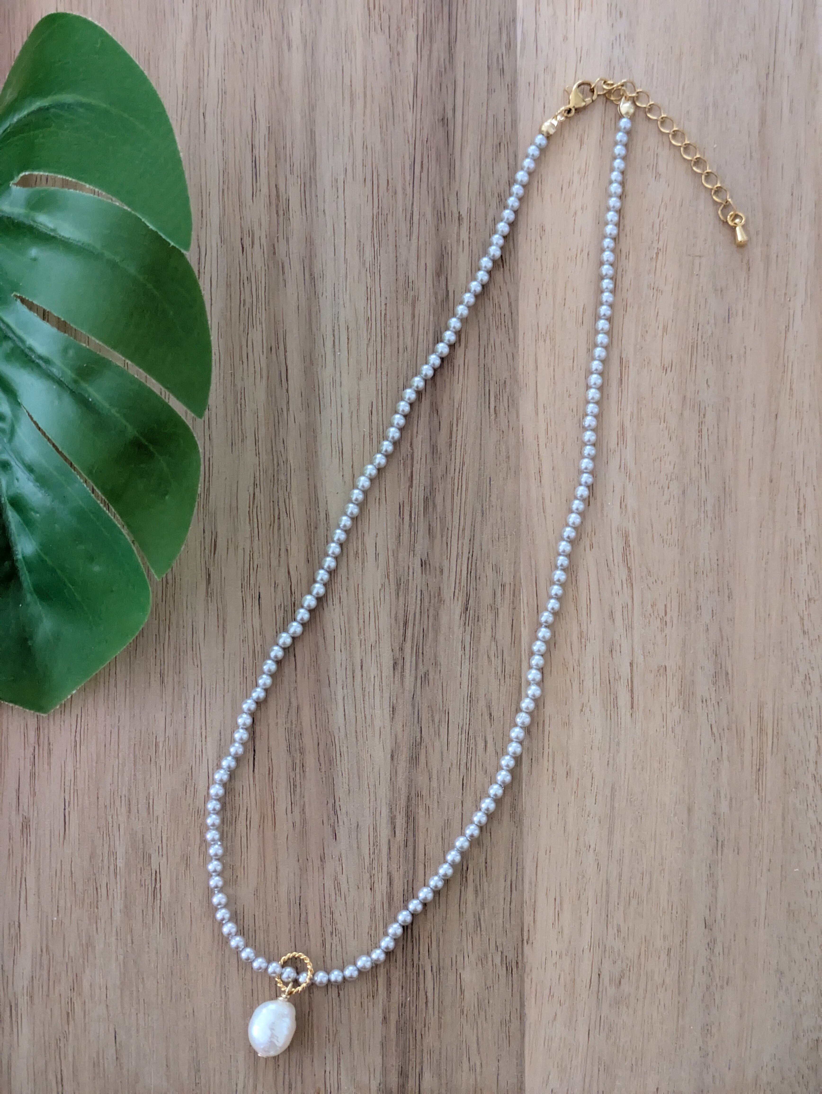 バロックパールのチャームが取り外しできるシェルパールのネックレスです。
