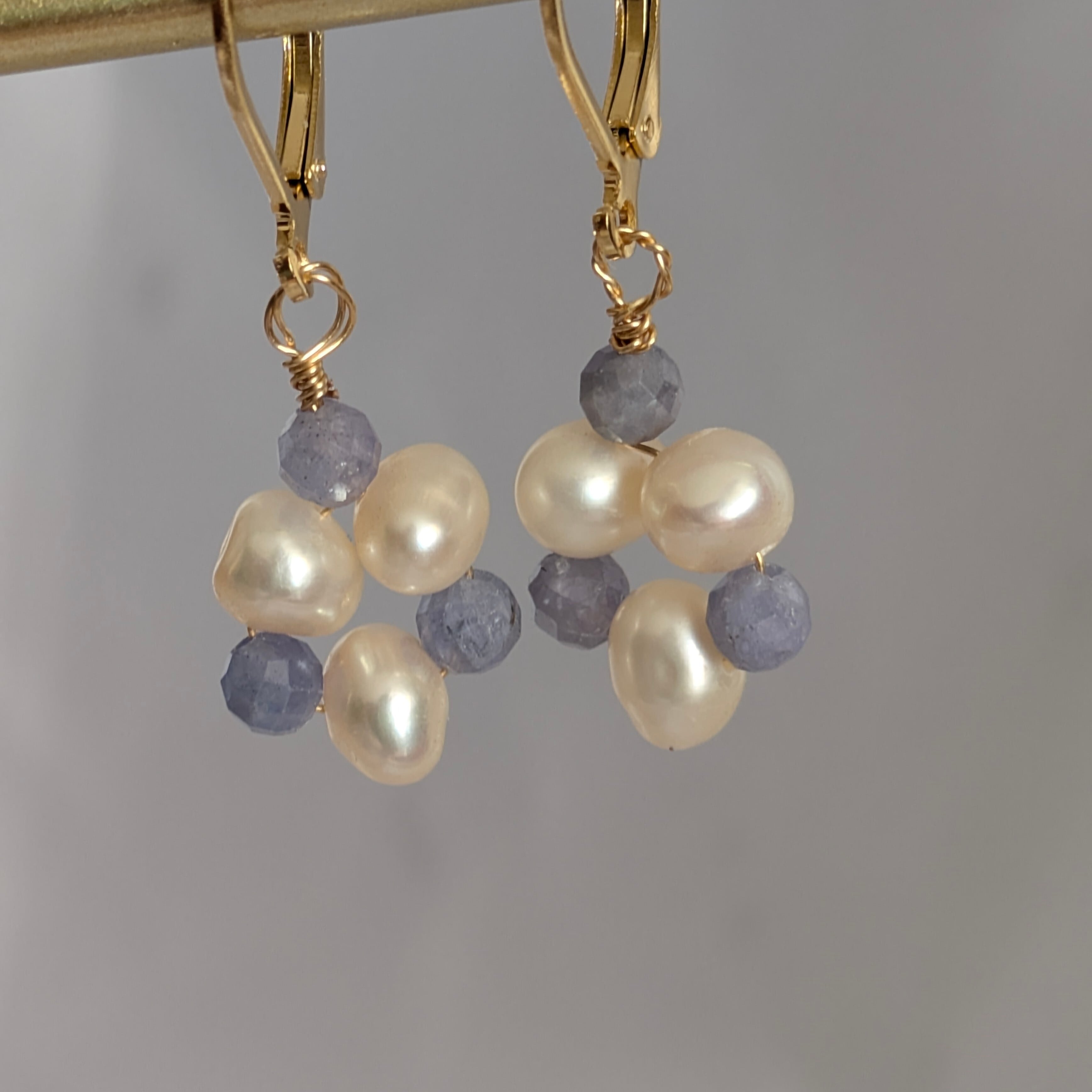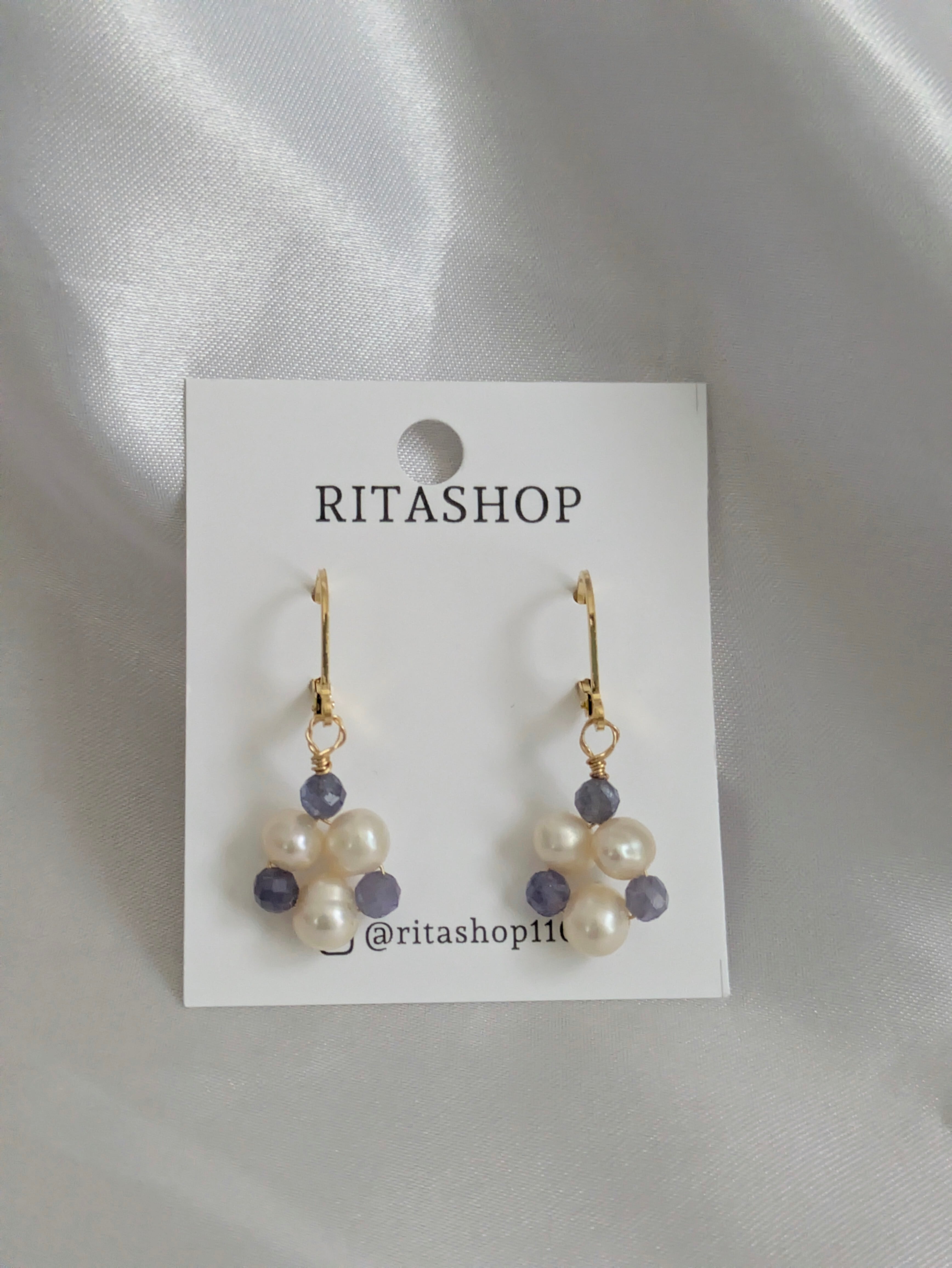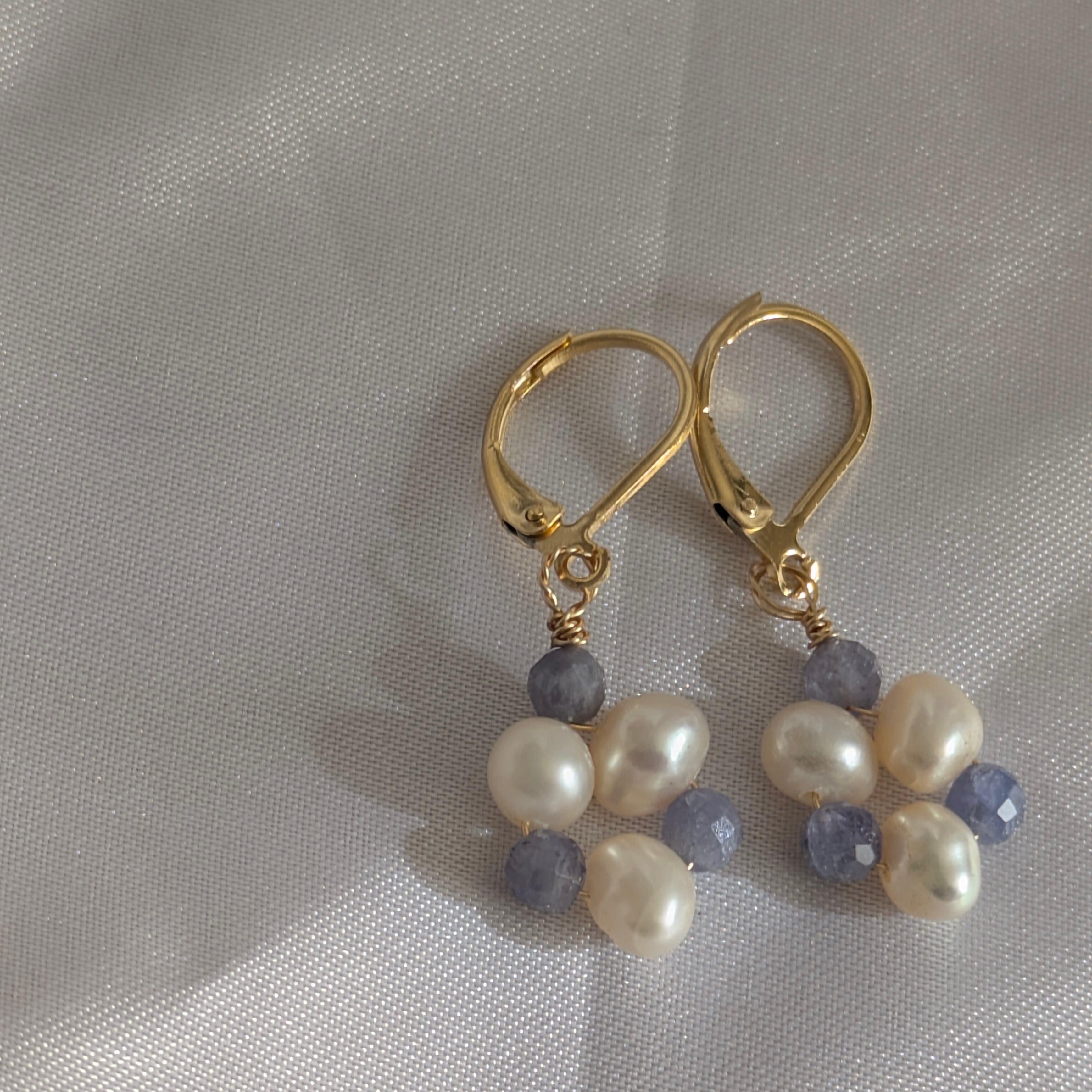 青紫色のタンザナイトビーズがキラッと光って耳元を彩ります。