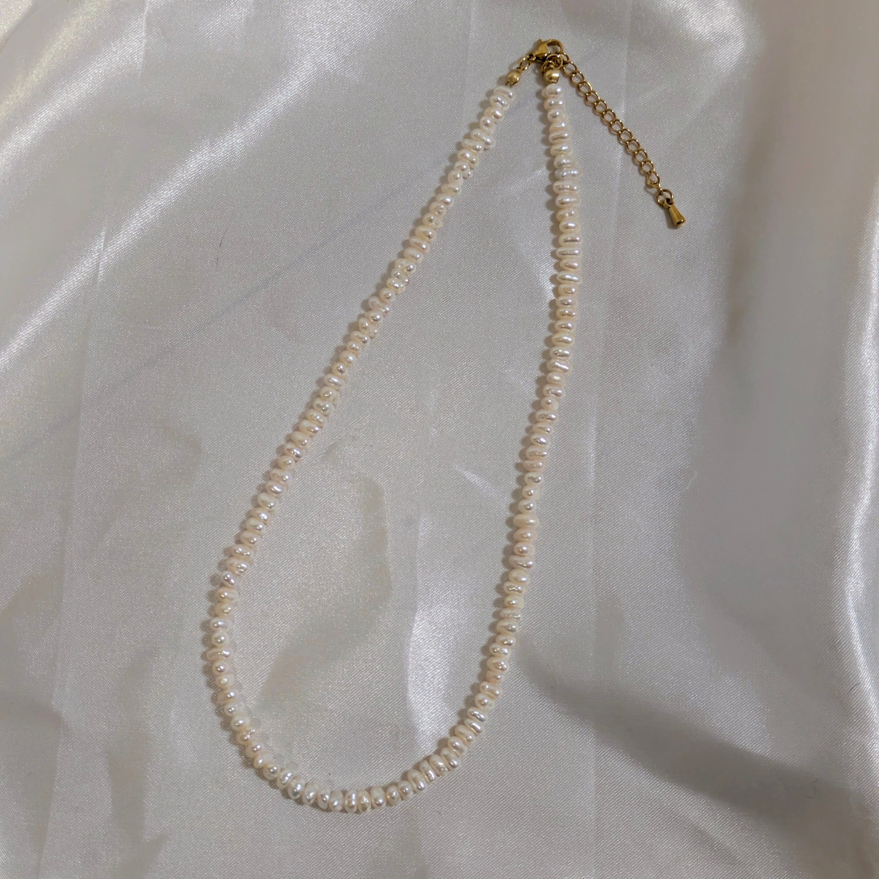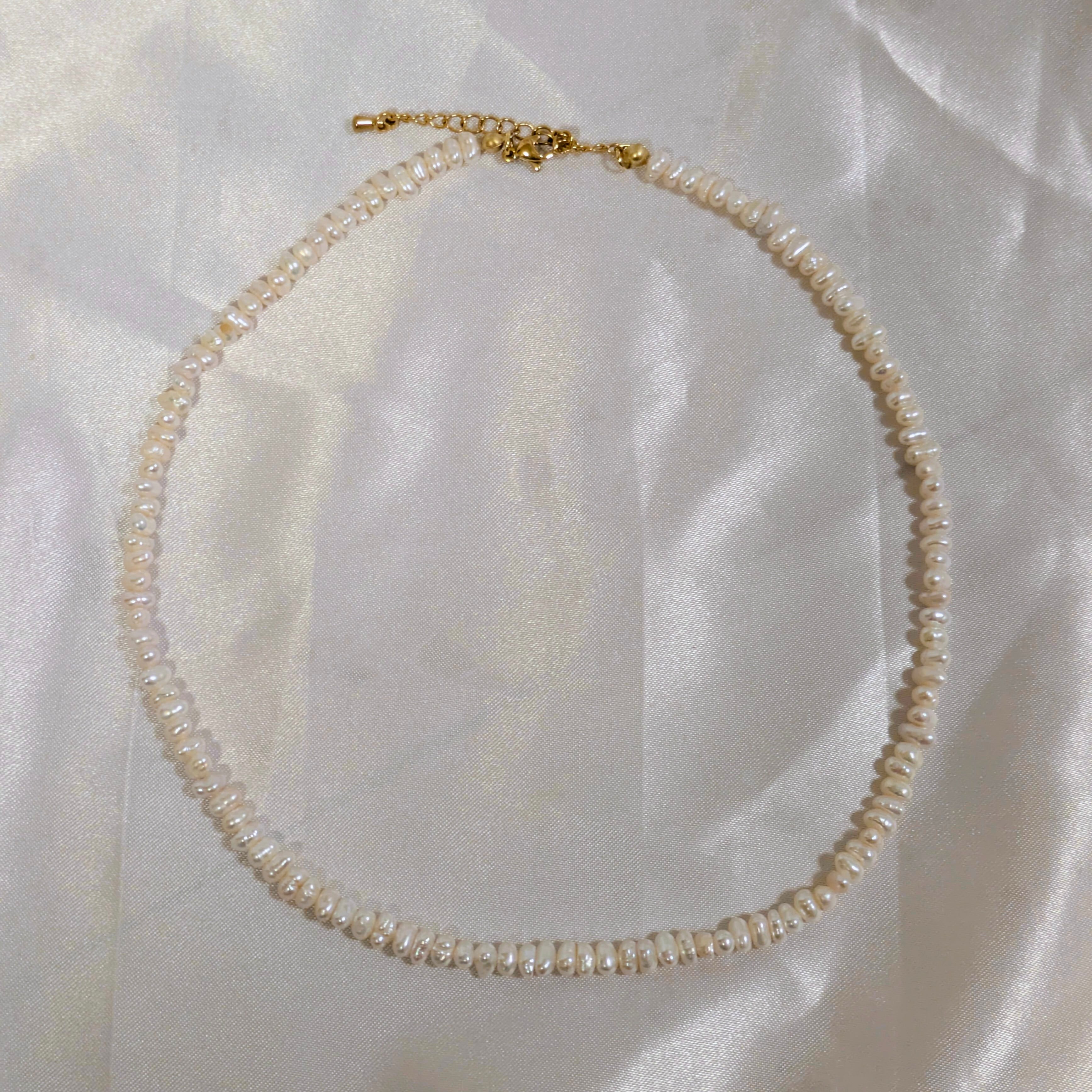 AAランク(状態良好、艶あり)のホワイトカラーの淡水パールネックレスです。