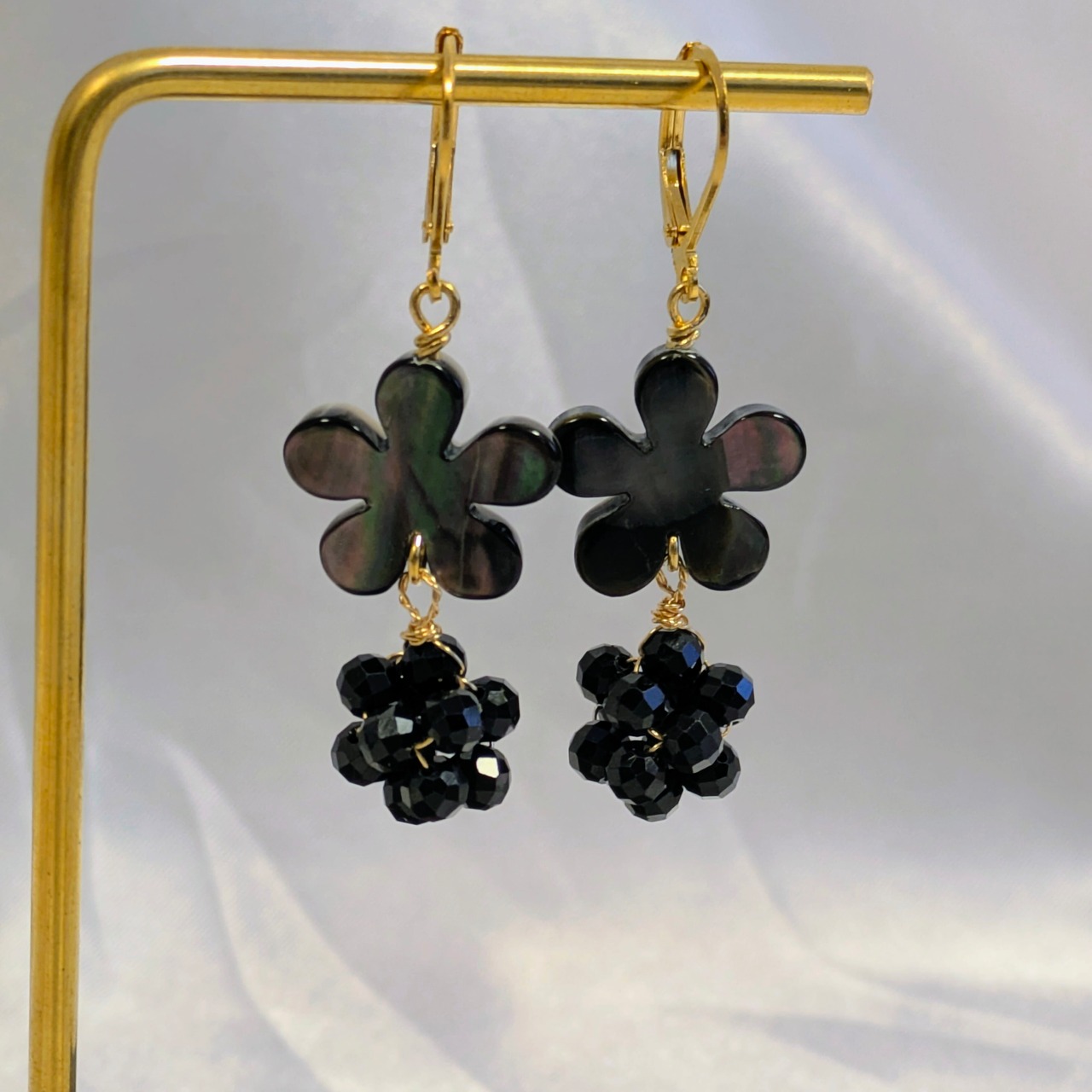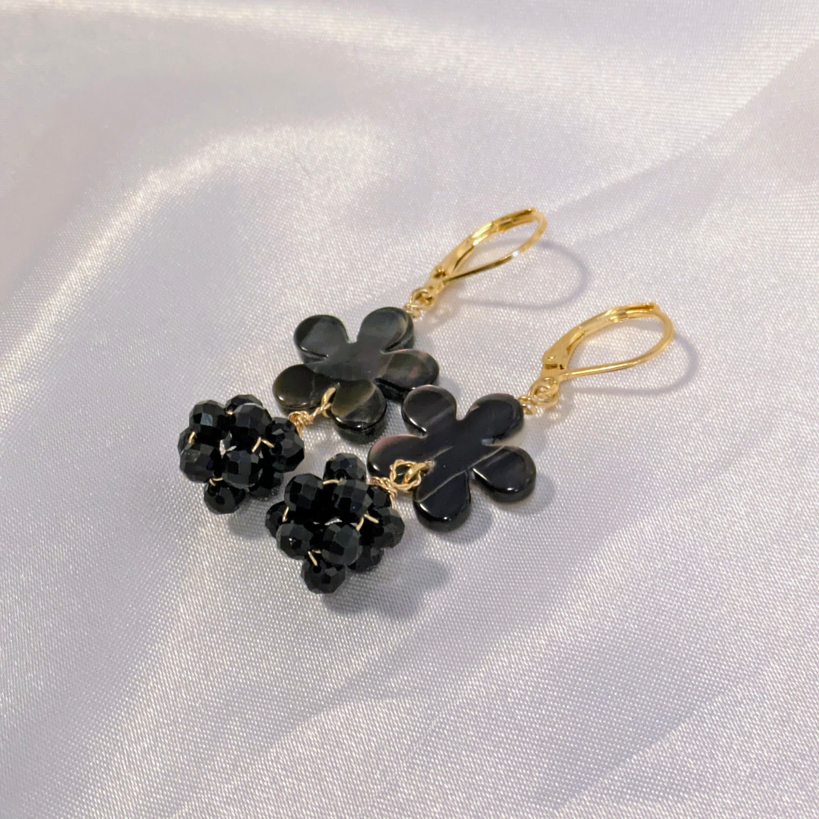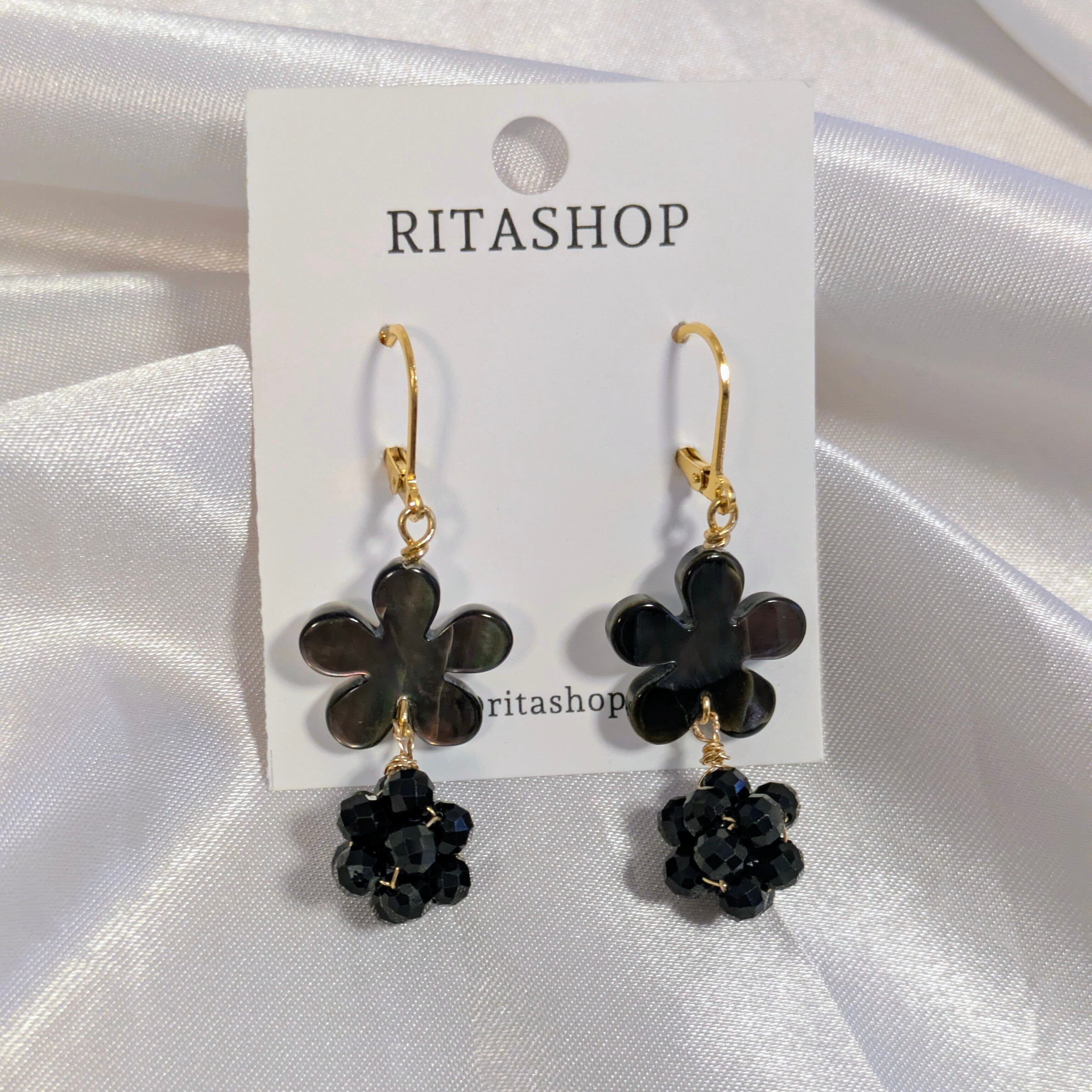 ブラックカラーなので甘すぎない、大人可愛いピアスになっております。