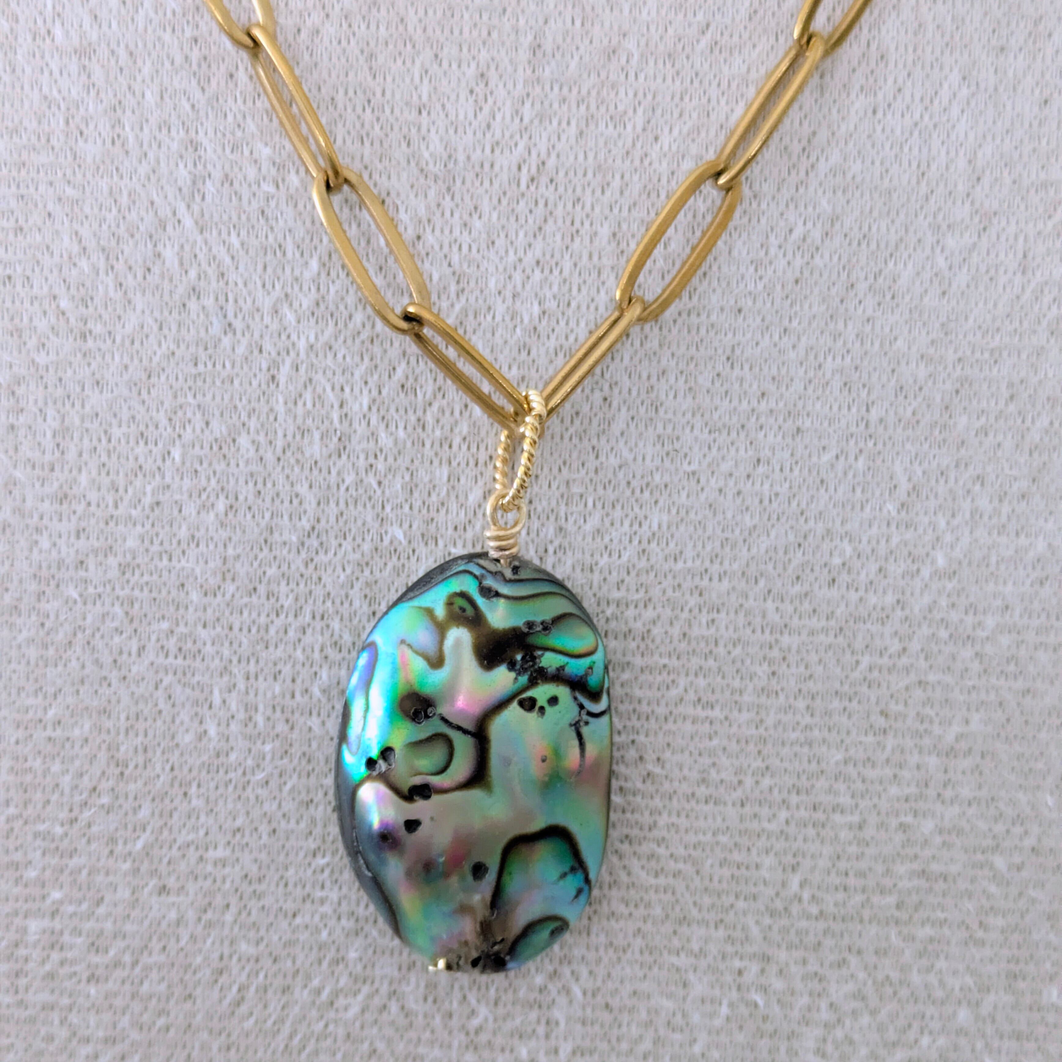 アワビのシェルの部分を使用した同じ模様のない美しいアバロンシェルのネックレス。