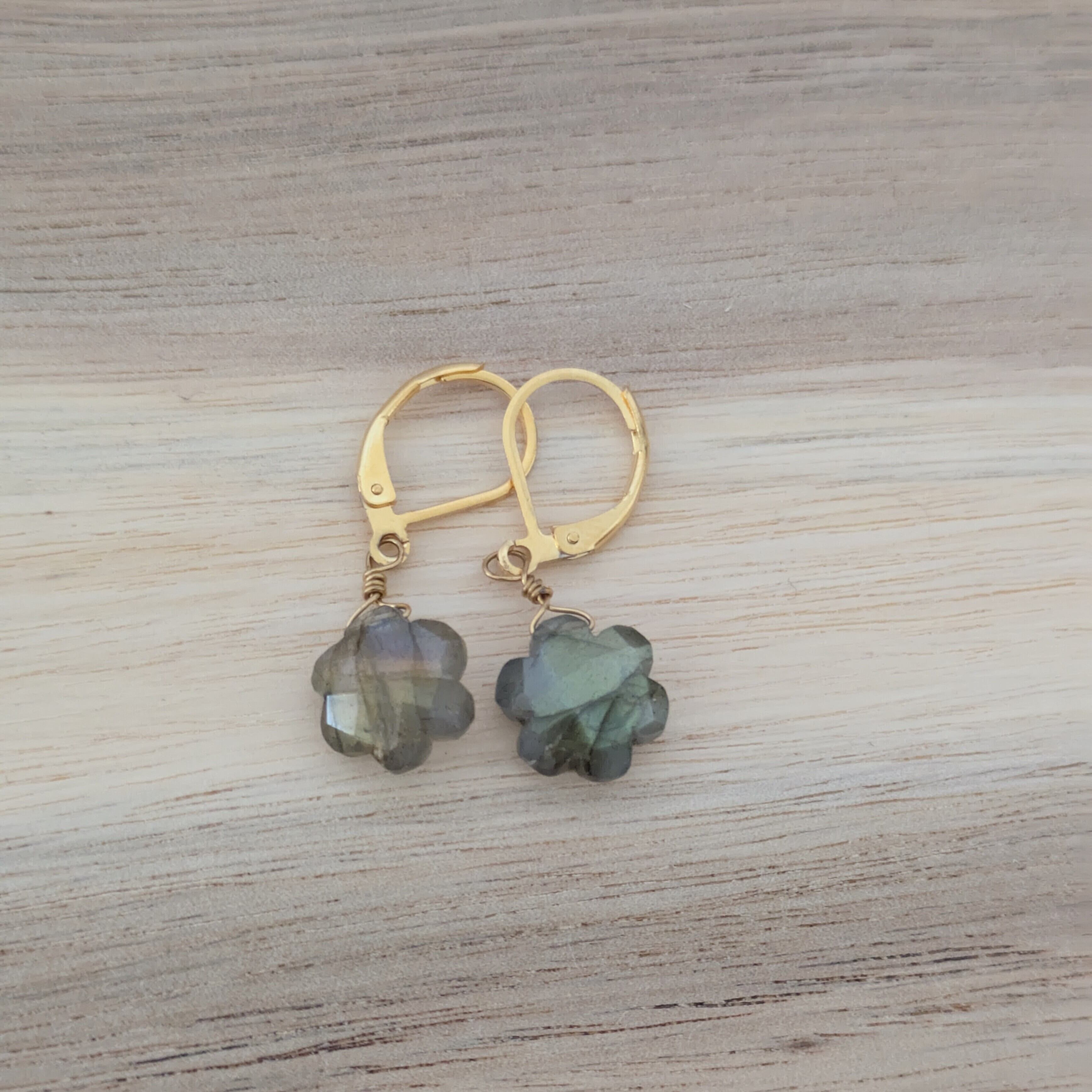 フラワー型かわいいです、色や光りかたもグレーの中にブルー、パープルの色味があってとても神秘的です♪